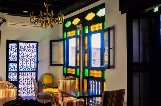 Le restaurant comporte deux étages : le premier est un bar où vous pouvez prendre un verre en écoutant de la bonne musique ; le deuxième étage abrite la salle à manger avec des tables recouvertes de nappes blanches où les clients peuvent déguster leur repas assis sur des chaises ou des canapés confortables placés près de fenêtres donnant sur le centre-ville de Tunis.