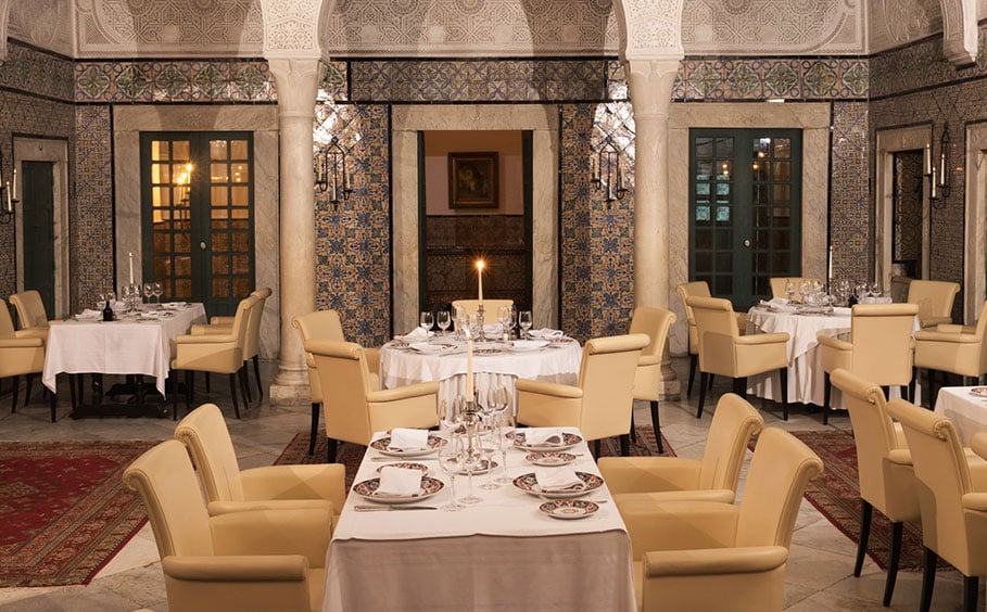 Dar El Jeld est un restaurant gastronomique de cuisine traditionnelle que vous pouvez louer pour toute occasion. Le rooftop bar et restaurant surplombant les toits de la médina est ouvert toute la journée et tard dans la nuit. La cuisine est supervisée par un chef français et propose des plats locaux ainsi que de la cuisine française. De nombreux vins de France, d’Italie et de Tunisie sont disponibles à des prix raisonnables. Parmi les plats recommandés, citons le magret de canard avec une sauce au foie gras ou le filet de veau enveloppé de lard.